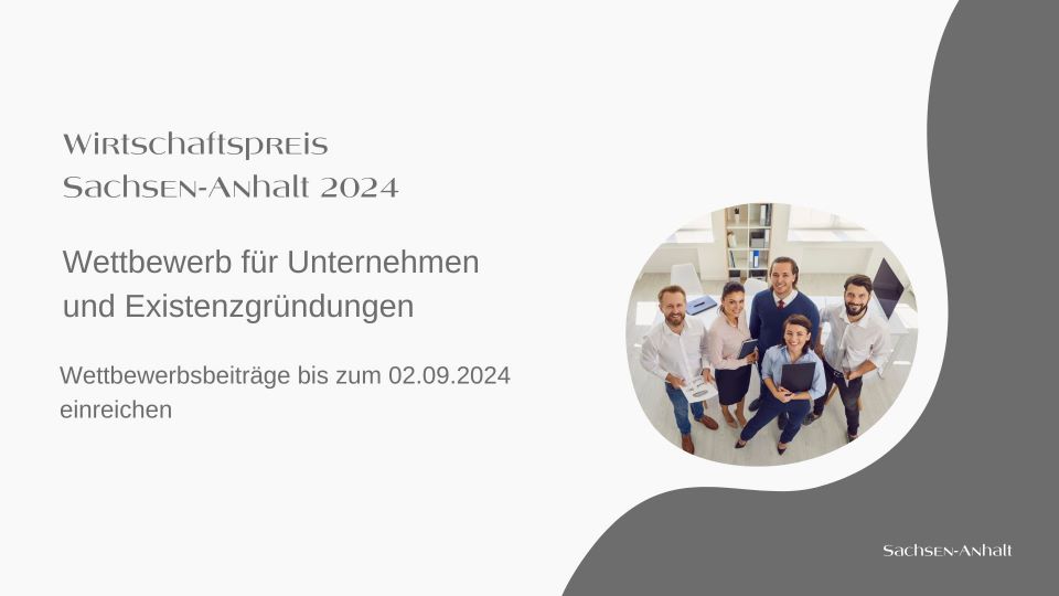 Existenzgründungen: Teilnahmeberechtigt sind Gründerinnen und Gründer, die ihre Betriebsstätte und ihren Hauptsitz in Sachsen-Anhalt haben, ihr Unternehmen innerhalb der letzten fünf Jahre gegründet haben und einen innovativen Fokus haben.