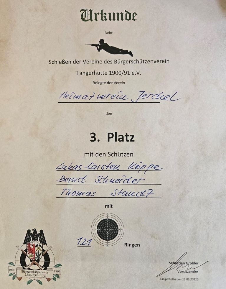 Unter den teilnehmenden Vereinen waren die Elterninitiative Kinderträume Tangerhütte, die Geflügel- und Kaninchenzüchter Tangerhütte, die Feuerwehr Jerchel, der Heimat- und Gutshausverein Jerchel, der ADAC Tangerhütte sowie der Bürgerschützenverein Tangerhütte vertreten. Auch in diesem Jahr stand das Miteinander im Vordergrund – verbunden durch Vereinsgeist, Tradition und Freude am Schießsport.